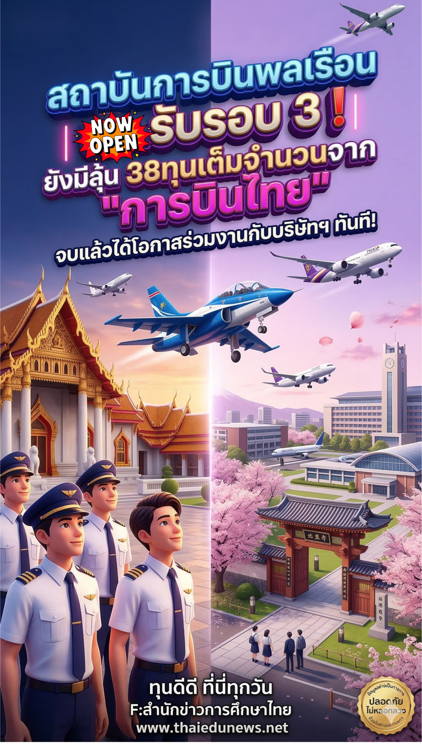 หลักสูตรด้านการบิน No.1 ของประเทศ พร้อมผลิตบุคลากรที่ได้คุณภาพ เข้าสู่เส้นทางอาชีพด้านการบิน เปิดรับสมัครรอบ 3 วันนี้ – 8 เม.ย. 69 ทาง